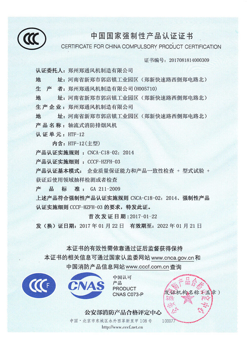 鄭通風機主要產品包括:高壓風機、不銹鋼風機、消防排煙風機、防腐防爆風機、廚房排油煙風機、玻璃鋼風機、鍋爐引風機、軸流風機、柜式離心風機、鍋爐引風機,產品通過ISO9001、ISO14001、ISO45001國際標準化組織制定的質量管理體系認證,部分產品通過了3C認證和國家防爆電器產品質量監督檢驗中心認證。